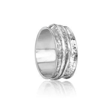 Sterling Silver textured Meditation Ring with two spinning bands. Includes complimentary MeditationRings Tin & Travel Pouch