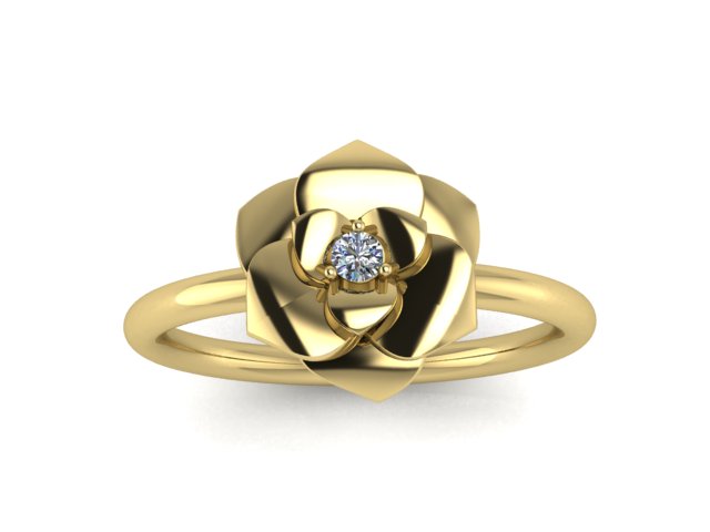 Camellia Flower Diamond Ring is available in Yellow Gold.