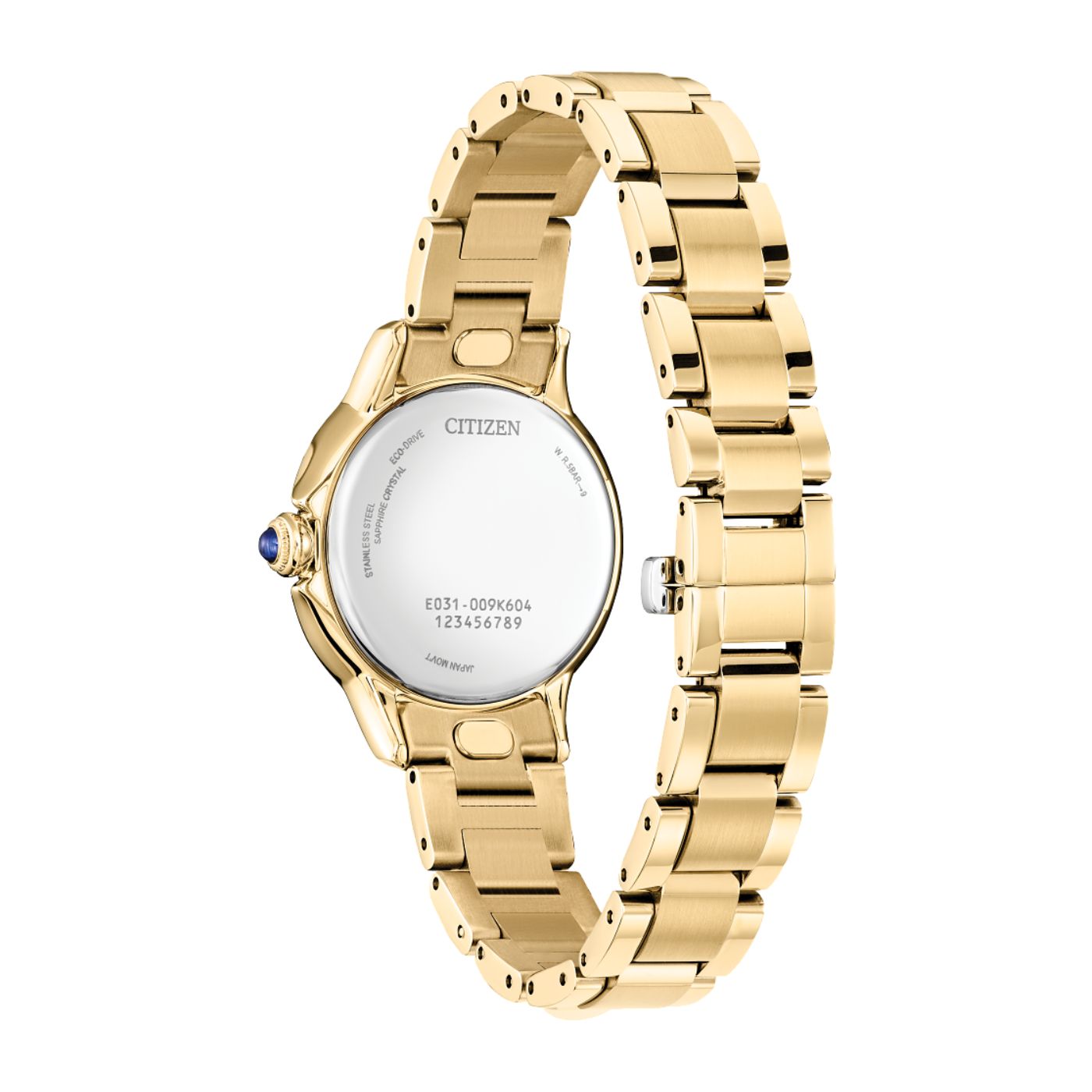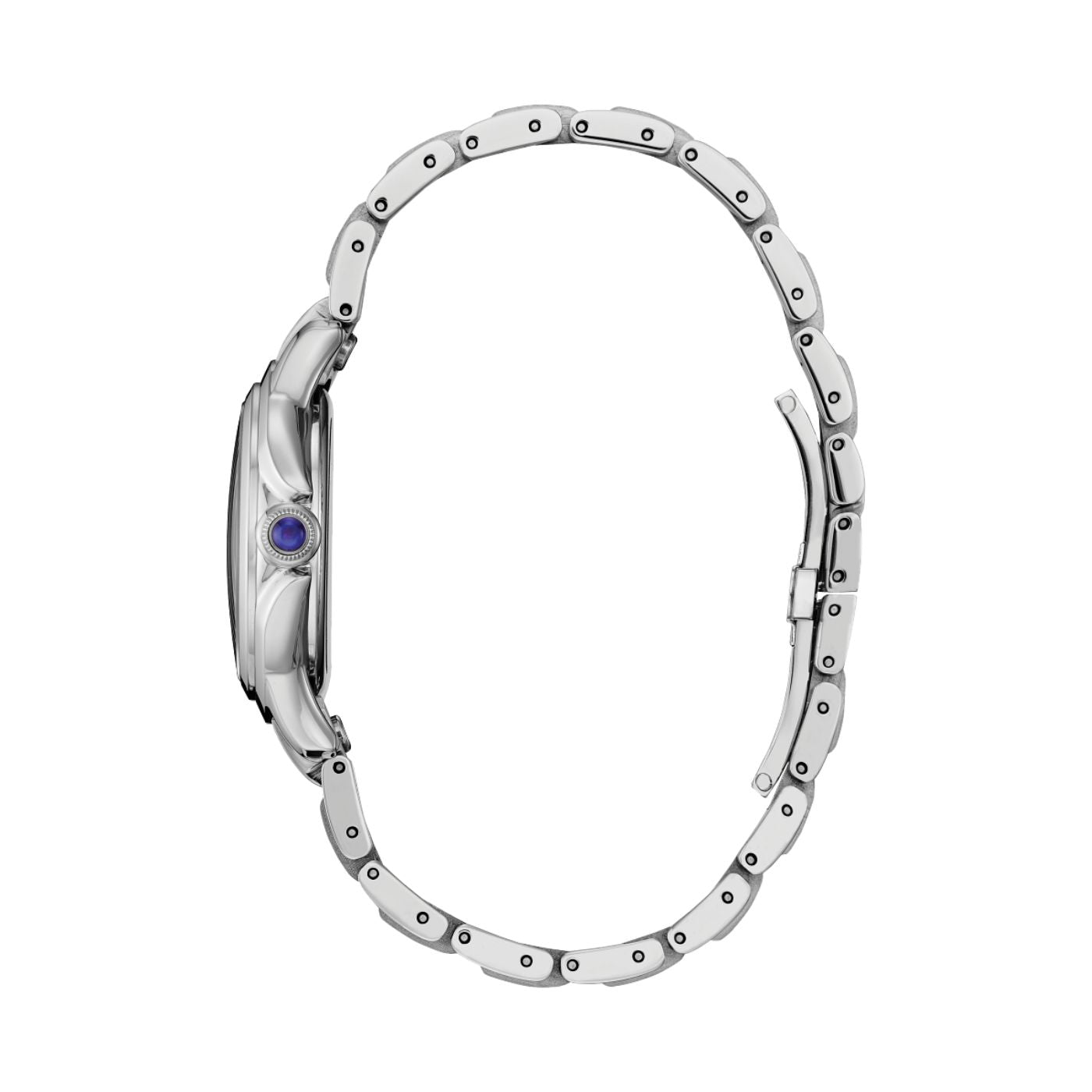 When it comes to elegant watches for women, the Ceci is a striking addition to any collection. Featuring a silver-tone stainless steel design with a case measuring 31.5mm across, its distinct shape is punctuated by a synthetic sapphire-set crown. On the dial, a black display features silver-tone accents, with the slim lines of the Roman numeral indices matching those of the hands. With this watch, you'll never need to worry about replacing a battery — this watch is sustainably powered by any light with our proprietary Citizen Eco-Drive technology. Whether you’re looking for a dress watch for special occasions or a beautiful timepiece to wear every day, the Ceci will look stunning on every wrist and elevate your style. Water resistant to 50 metres. Calibre E031.