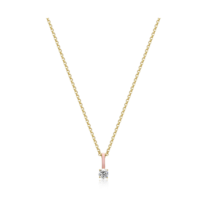 Solitaire CZ Light Pink Enamel Necklace