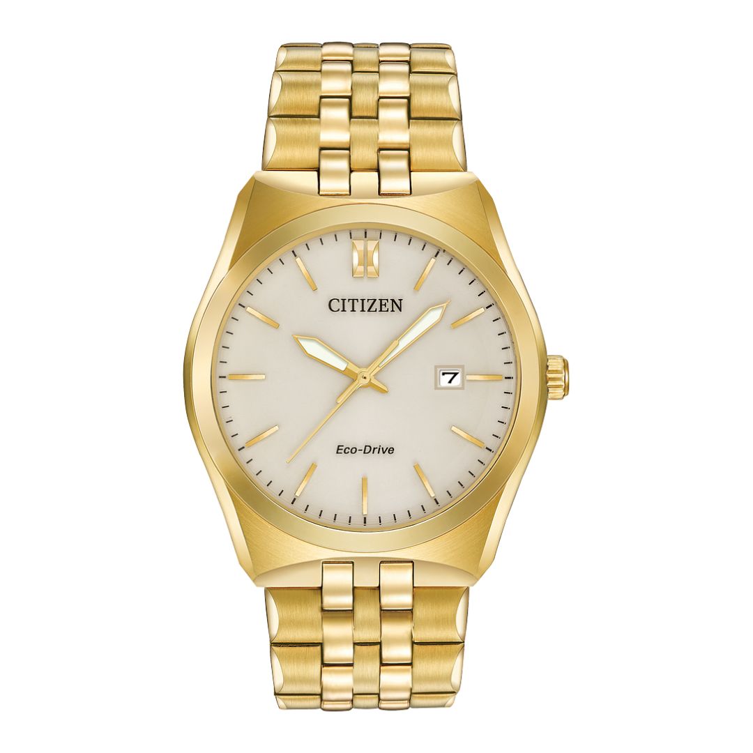 The byword is versatility for this handsome 3-hand watch crafted in stainless steel. Details include luminous hands and a date window, all set beneath sapphire crystal. Sporting a 41mm screw-back case, this bracelet features a fold over clasp with push button and is 100M WR.