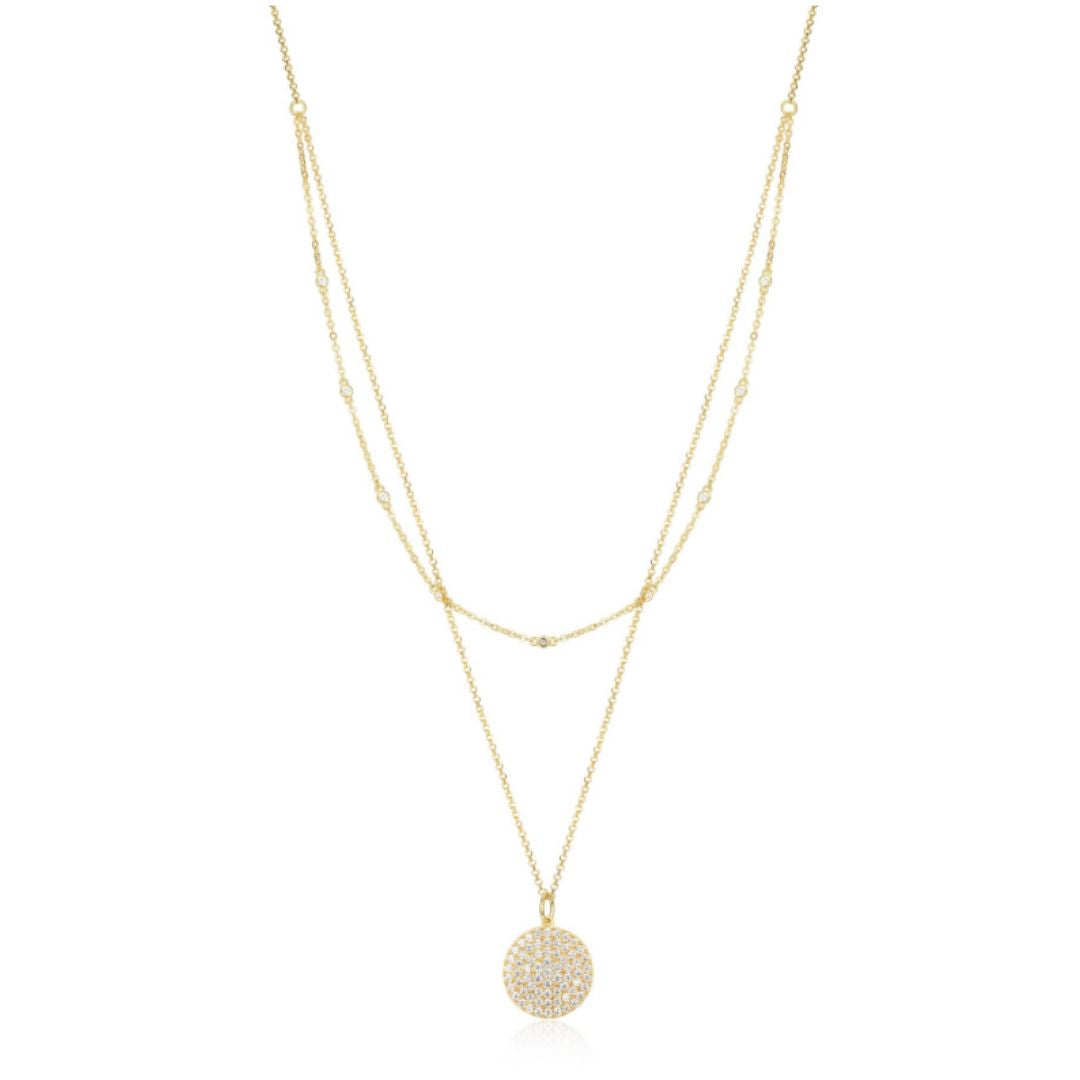 From the PAJ Collection. Stylish rhodium-plated sterling silver circle pave double-layer necklace with high-quality cubic zirconia accents.