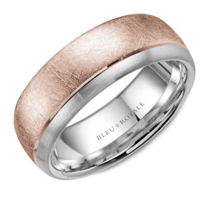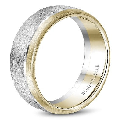 The Diamond Brush and Sandpaper Band is available in White & Rose, Rose & White, White & Yellow, or Yellow & White Gold.