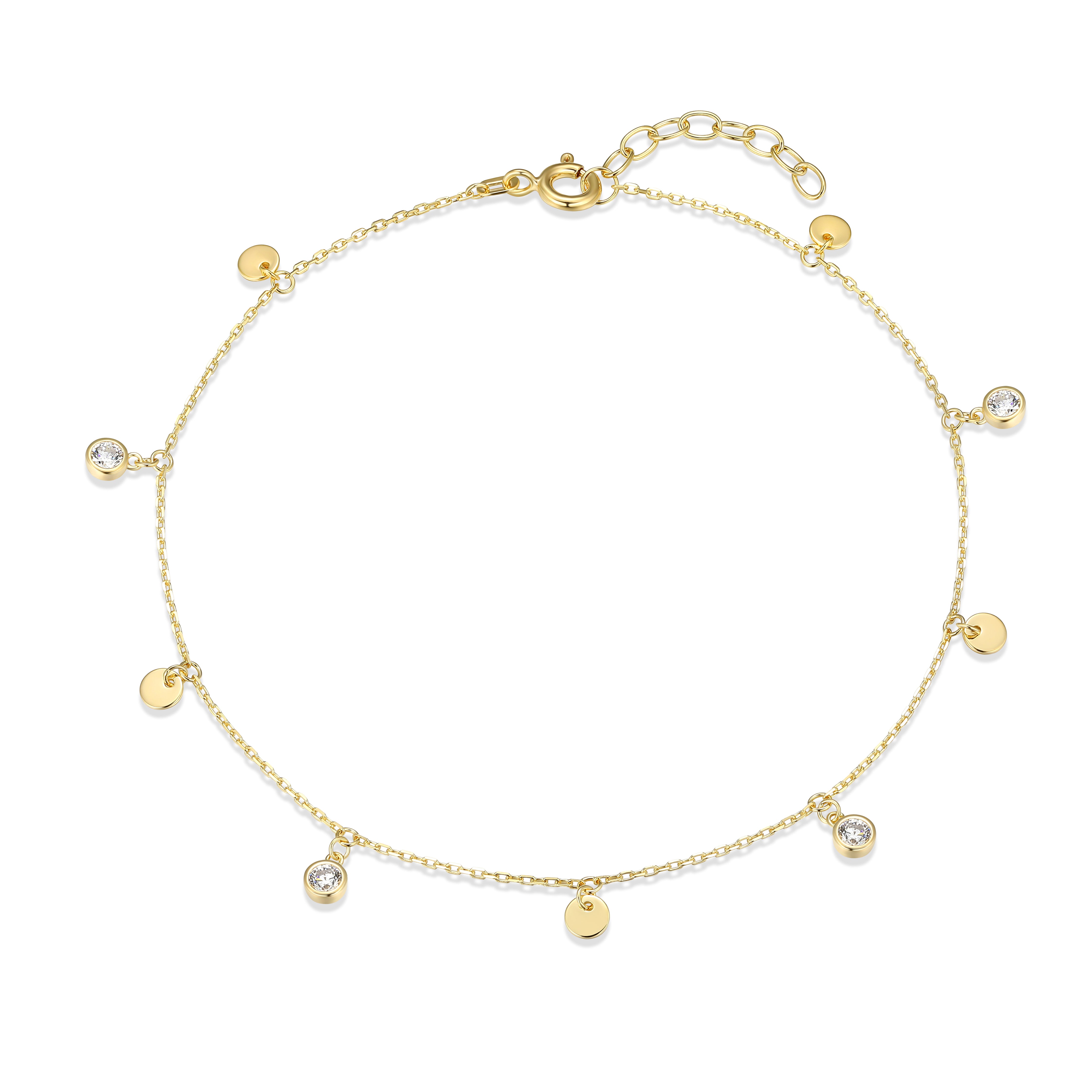 From the PAJ Collection. A crowd pleaser. This bracelet can be worn alone or layered with other bracelets. Constructed diamondlite cz disc charms, 18kt gold-plated sterling silver for a luxurious finish with adjustable length.