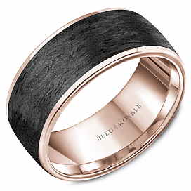 The Forged Carbon Fiber & 14K Gold Band is available in Yellow, White, or Rose Gold.