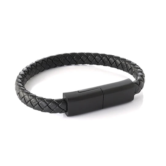 The iPhone Leather Bracelet is made with genuine leather and is fastened securely with a stainless steel clasp, and comes with a USB-C to USB cable, making it the perfect accessory for your wrist.