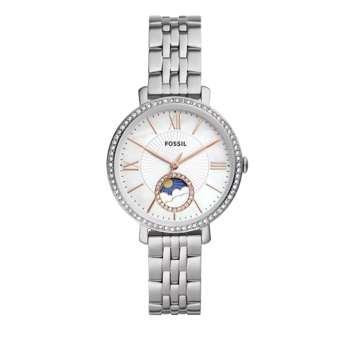 Jacqueline Sun Moon Multifunction Stainless Steel Watch