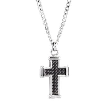 - Stainless Steel, Black Carbon Fibre, Cross Necklace