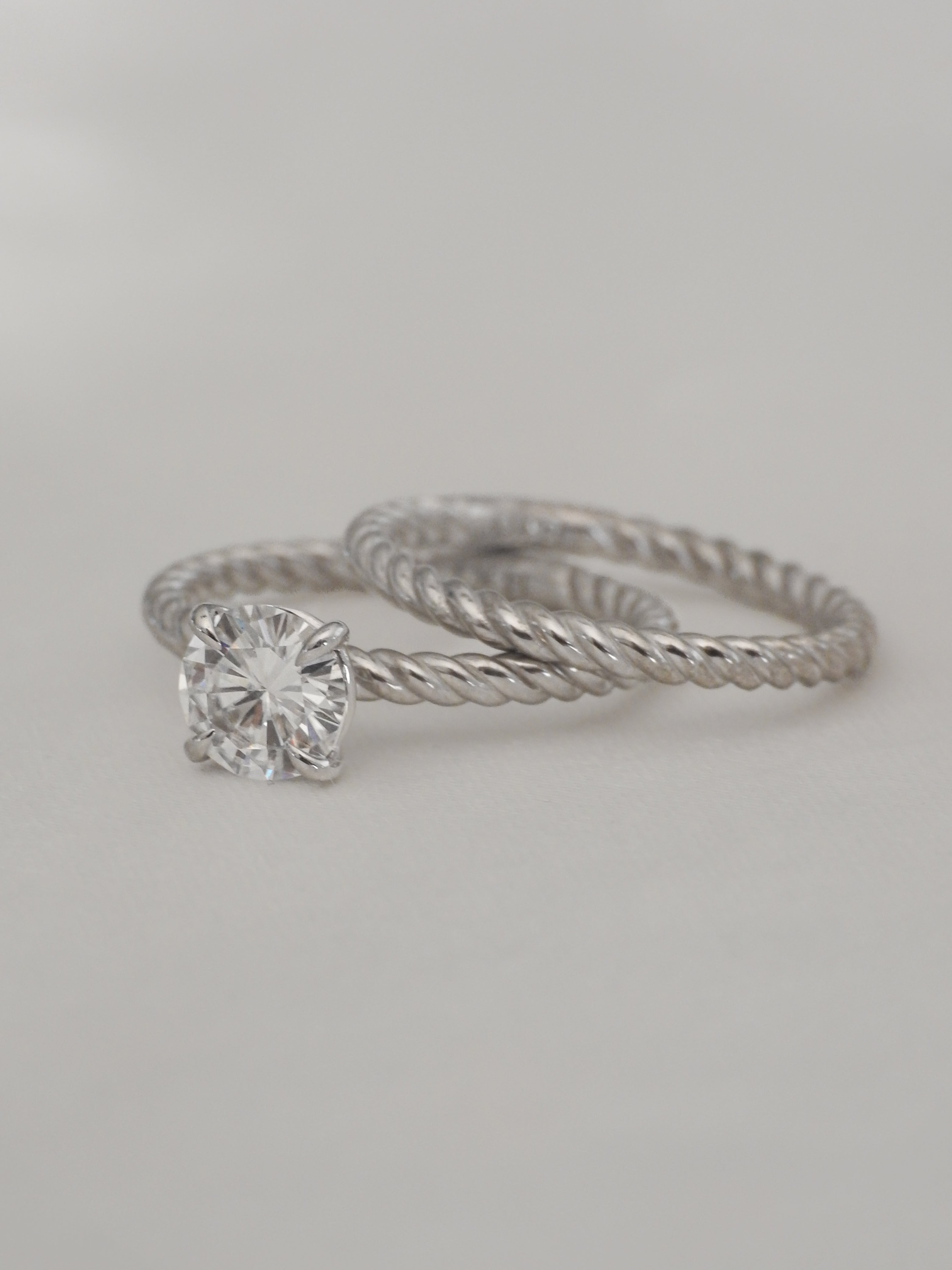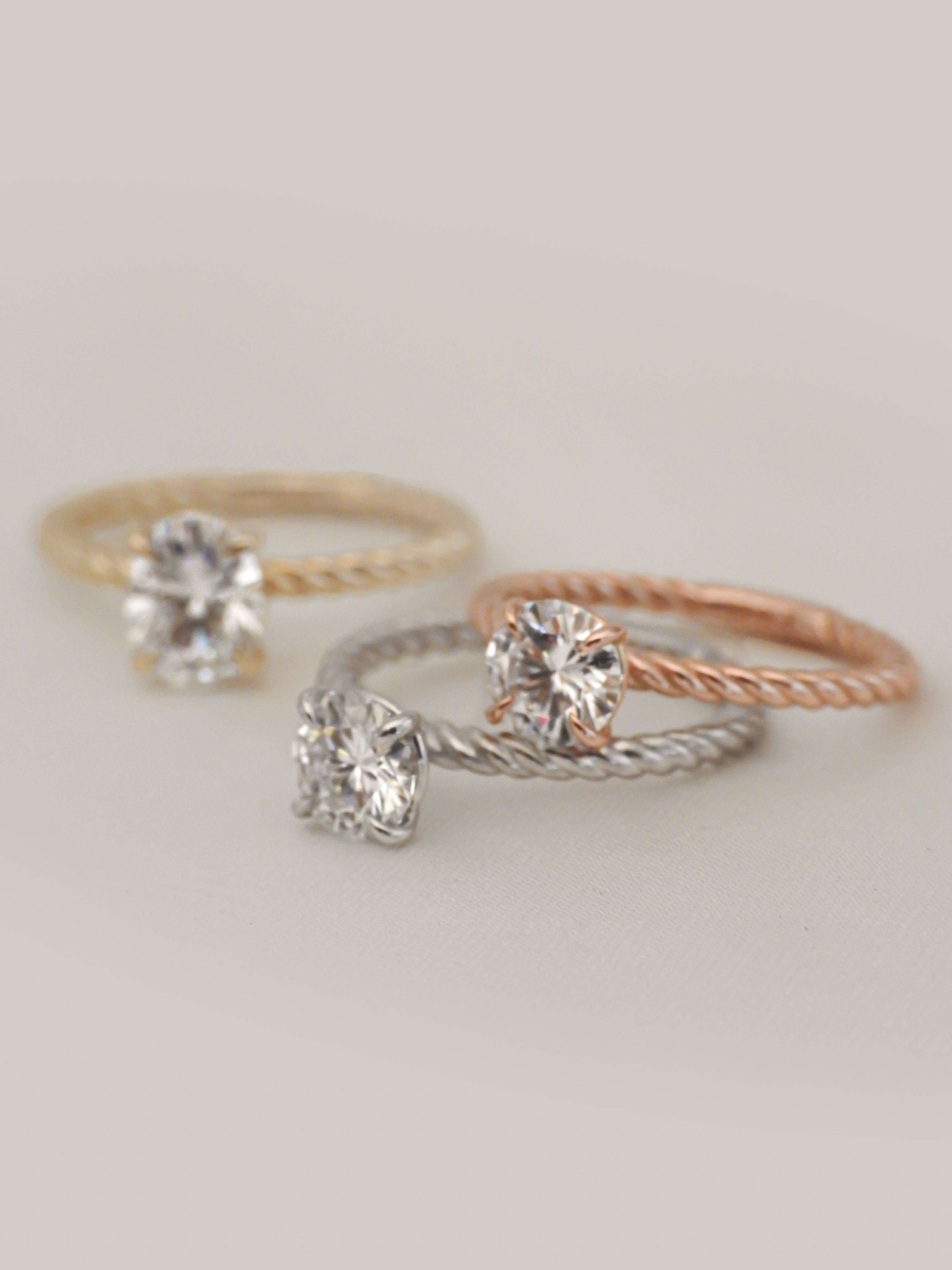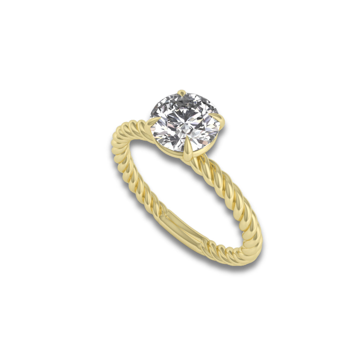 Lennon embodies the perfect balance of modern and classic with its high-polish braided gold band. This striking detail adds a touch of contemporary flair and a captivating rope texture, creating a one-of-a-kind solitaire design. It's the perfect symbol of a unique and timeless love story.