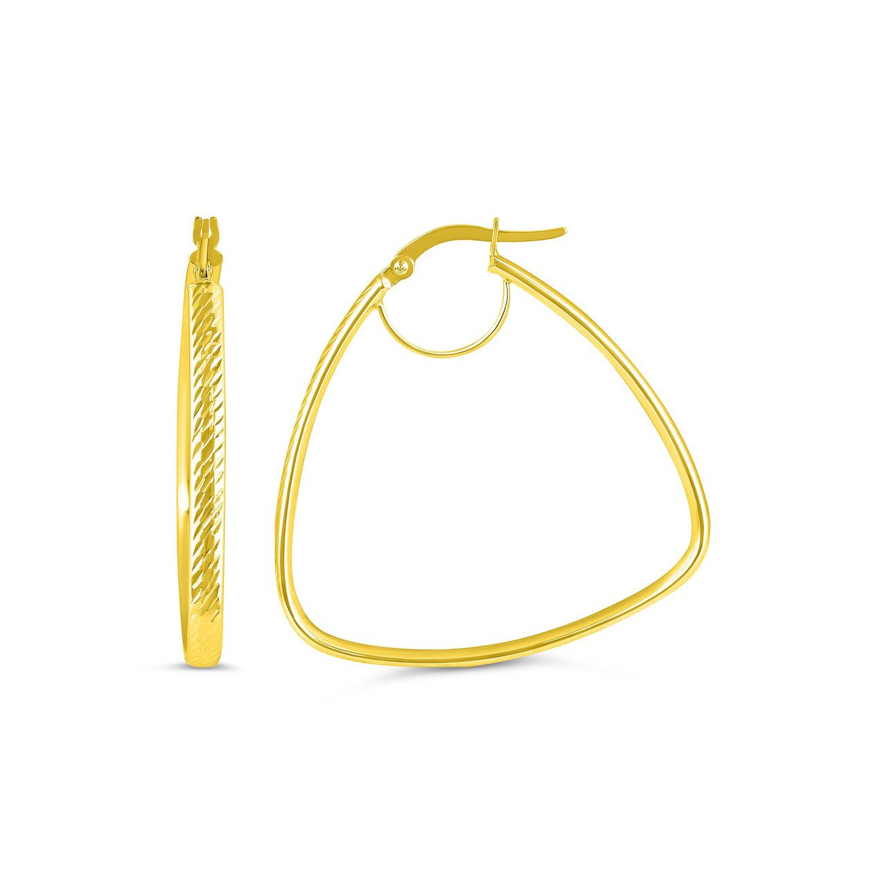 Elevate your look and brighten your day with these striking triangle hoops. Expertly handcrafted in 10k yellow gold, these bold earrings are the perfect upgrade to make your eardrobe stand out with confidence.