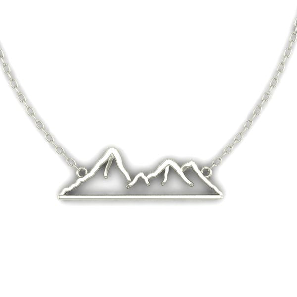 The Lawlor Love Mountains Are Calling Necklace has a lightweight and durable mountain scene inspired by your love of the outdoors. It comes on either a 16" or 18" chain for variable lengths