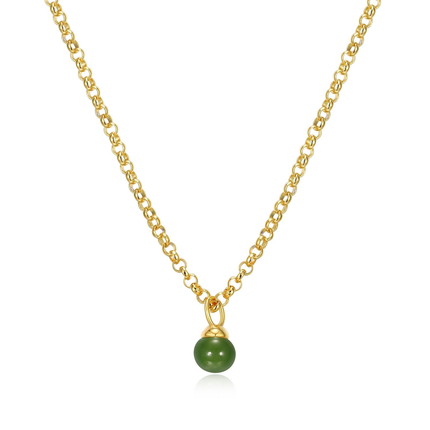 From the PAJ collection, a polished 18kt yellow rhodium-plated and sterling silver solitaire bead necklace with genuine Green Nephrite Jade.