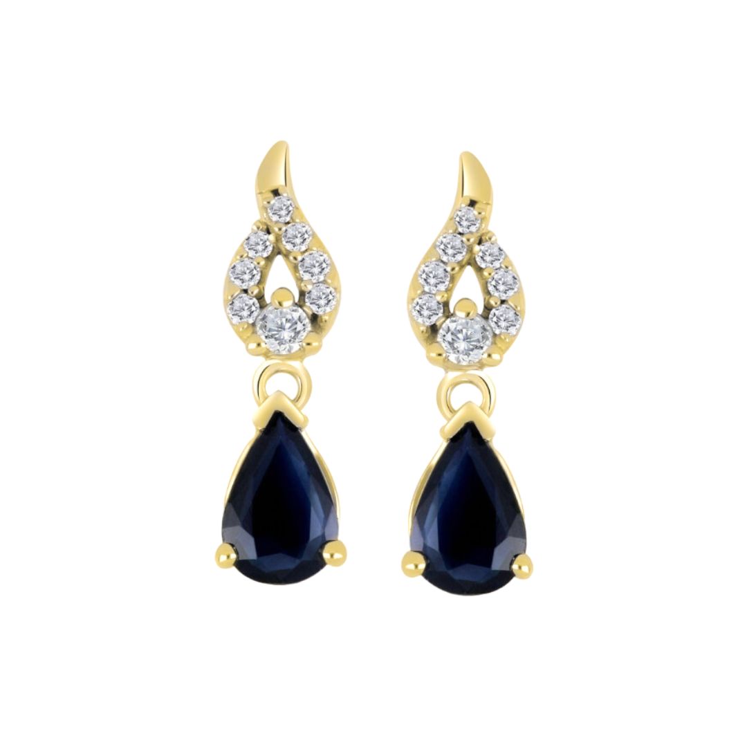 This Pear Sapphire Dangle Earrings are available in Yellow Gold.