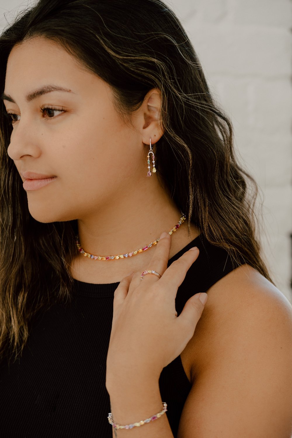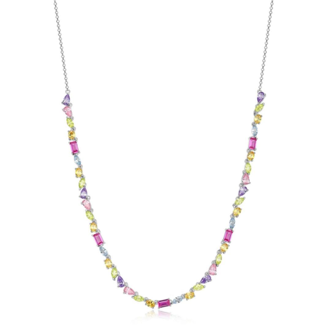 A crowd pleaser. This versatile chain can be worn alone or layered with other necklaces. Constructed from rainbow multi-stone cz and Sterling Silver for a luxurious finish.