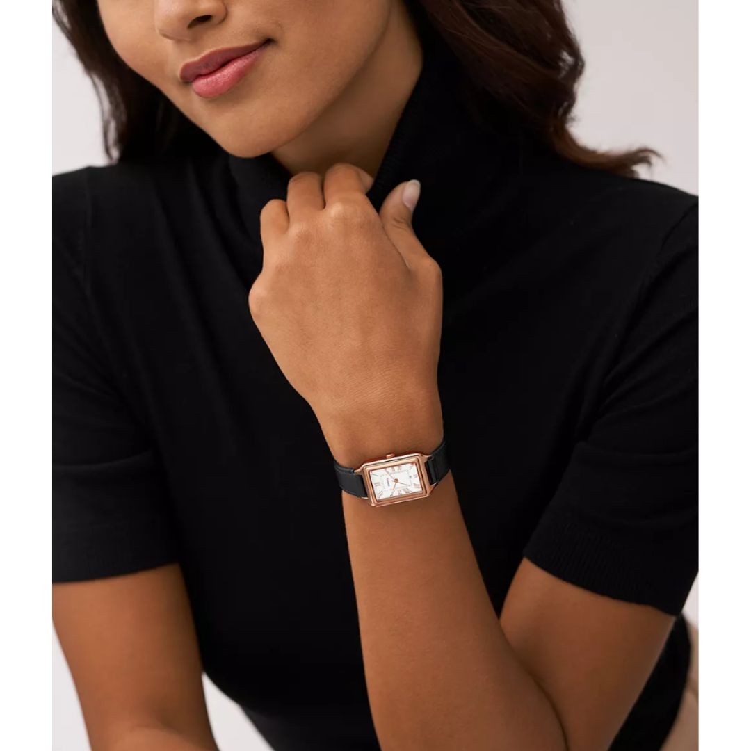 Raquel Three-Hand Date Black LiteHide™ Leather Watch