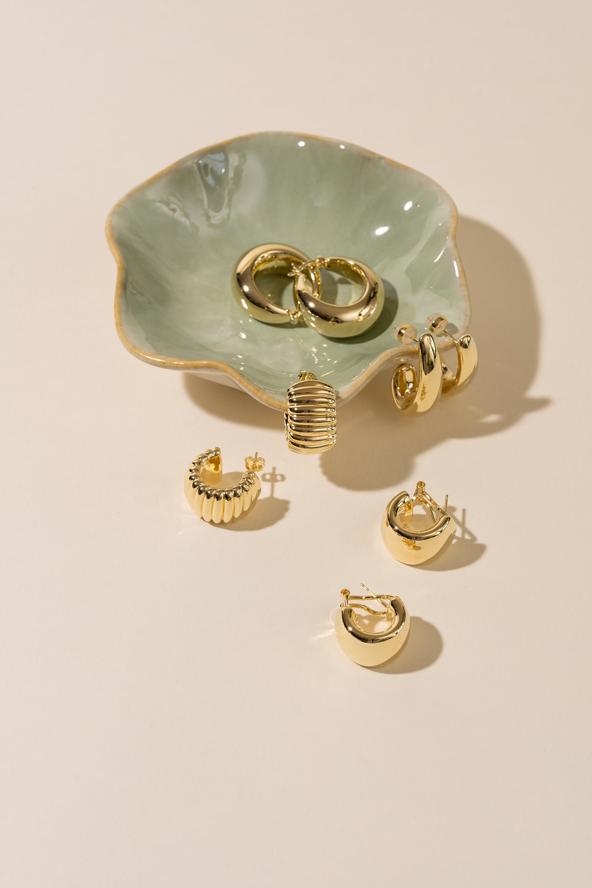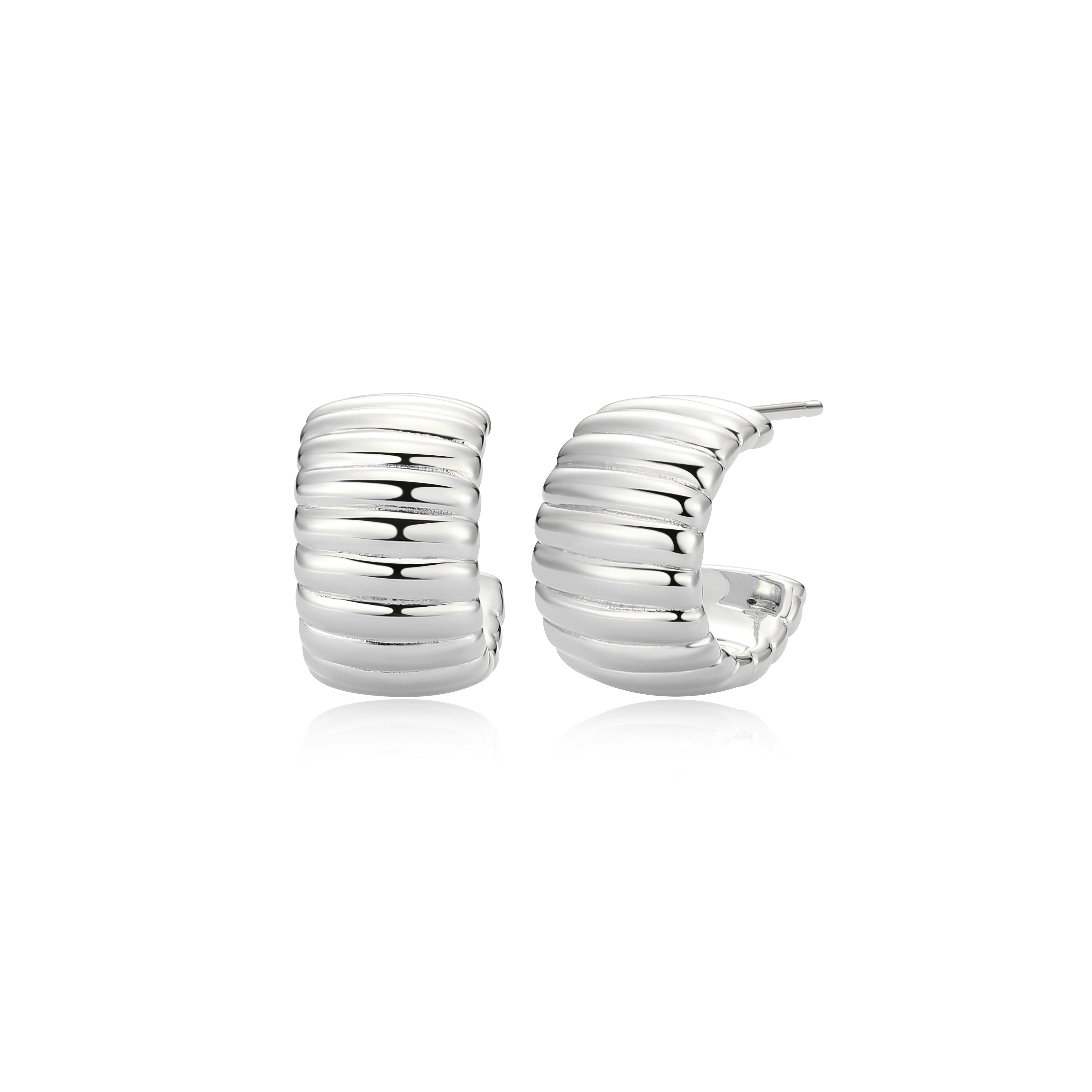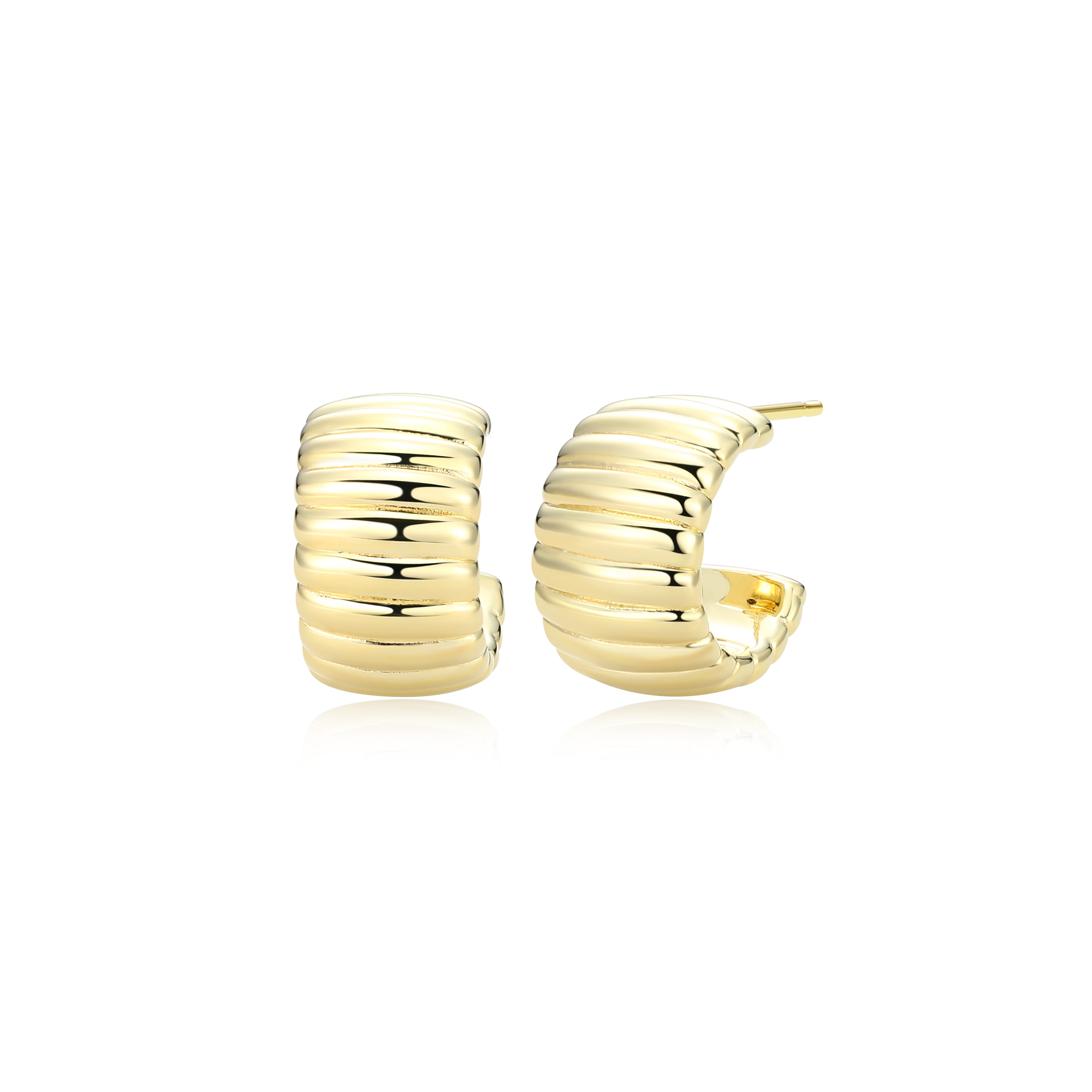 From the PAJ Collection. Elegant Ribbed Half Hoop Earrings. Available in white or yellow gold plated.