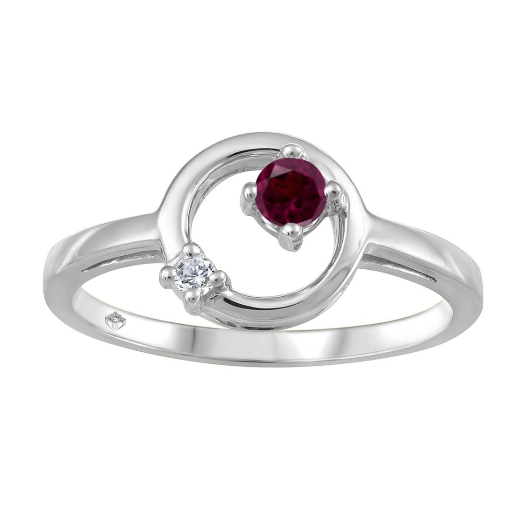 Rhodolite Garnet and Canadian Diamond Circle Ring is available in White Gold.