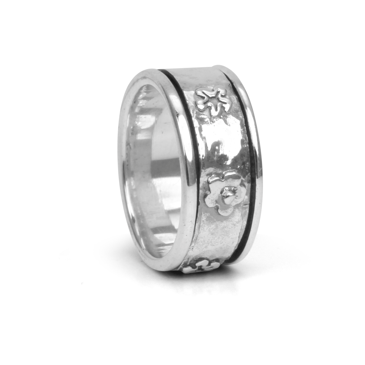 Sterling Silver Meditation Ring with a spinning band with daisies. Includes complimentary MeditationRings Tin & Travel Pouch