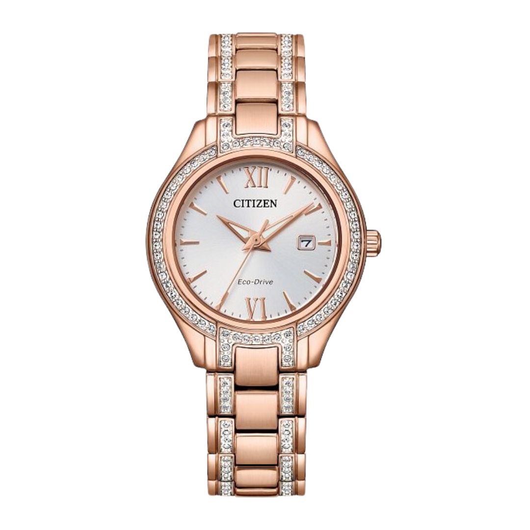 For a feminine timepiece that is sure to turn heads, the Ladies' Silhouette Crystal is a beautiful watch for women that is the perfect accessory for every occasion. The pink-gold stainless steel bracelet features 48 crystals, with the matching pink-gold stainless steel case sporting an additional 66 crystals. The silver-white three-hand dial finishes the look, pulling the entire style together. On top of that, the watch is sustainably powered by light with CITIZEN's exclusive Eco-Drive technology. No matter what the occasion, or what fashion is called for, this timepiece will always be the perfect accessory.