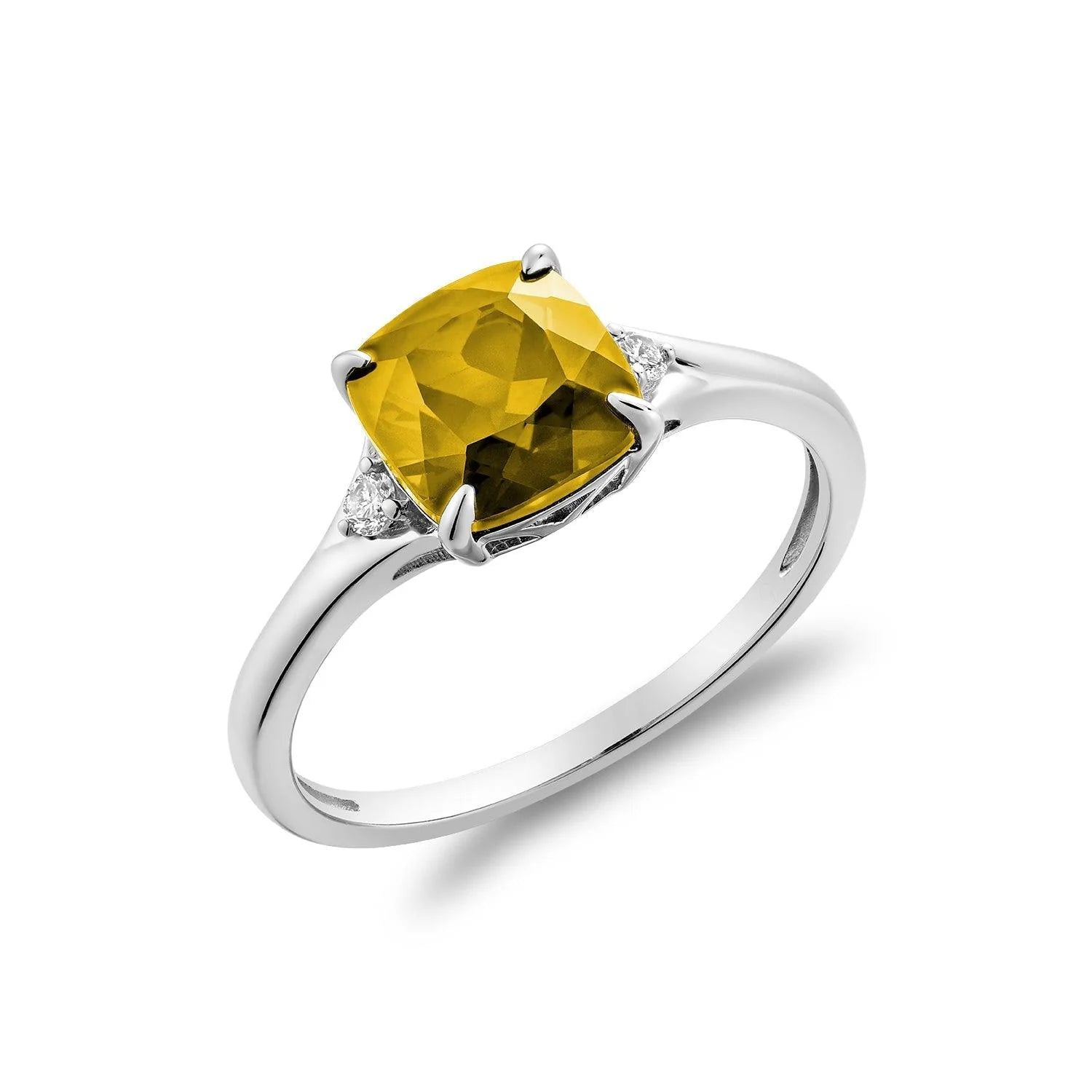 Solitaire Cushion Cut Citrine with Diamond Ring
