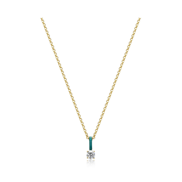 Solitaire CZ Teal Enamel Necklace