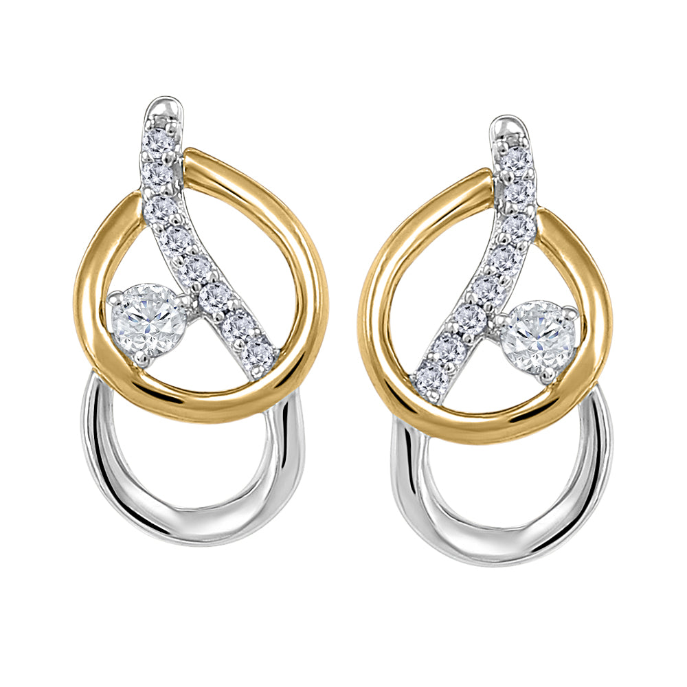 The Canadian Diamond Scroll Earrings are available in Yellow with Rose Gold or White with Rose gold.