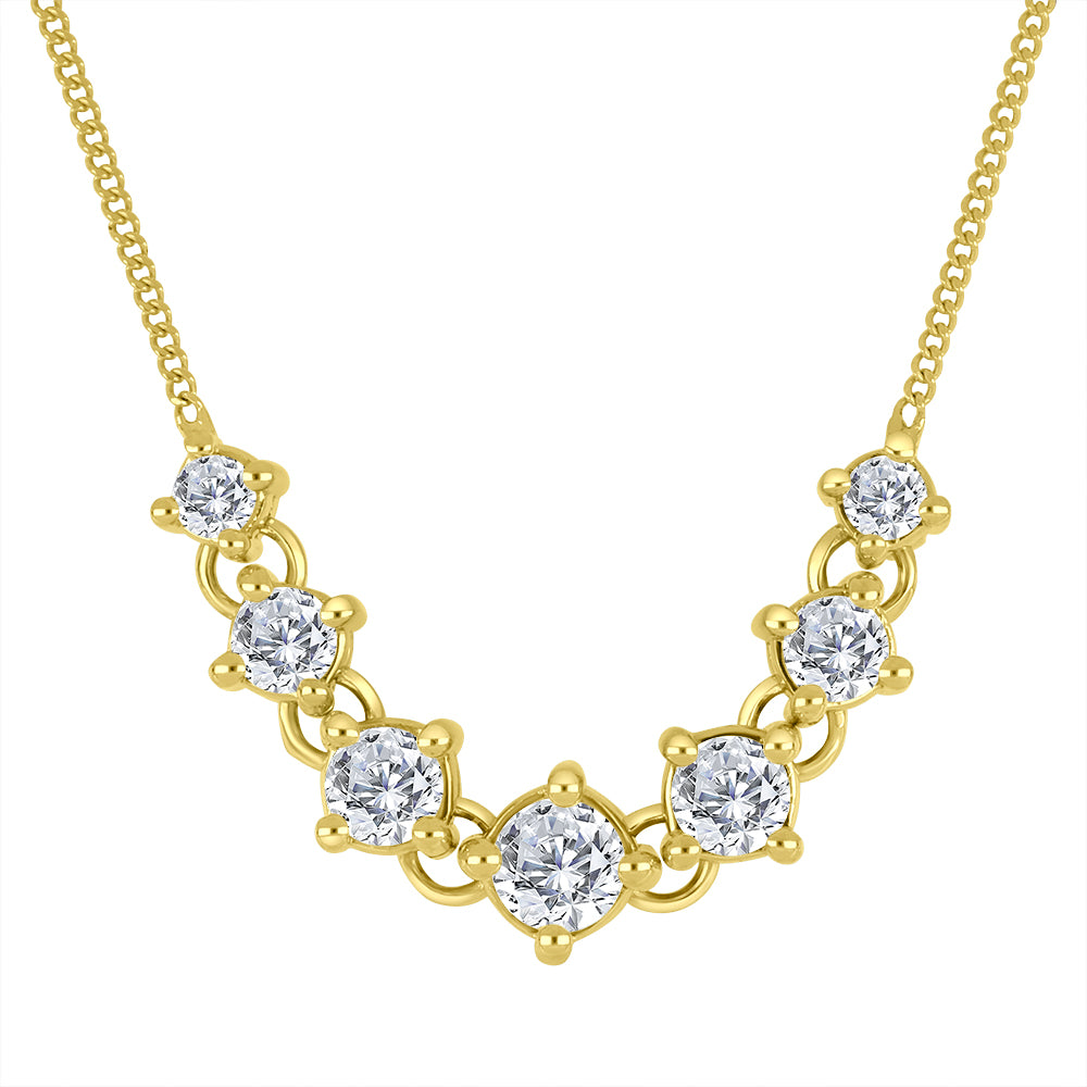 Seven shimmering lab-grown diamonds flow seamlessly, creating graceful movement that catches the light with every turn. Set in polished 10K yellow gold, this necklace blends modern elegance with effortless motion — a statement piece designed to elevate any look, whether worn solo or paired with the Cascade Earrings for an irresistibly sleek combination that commands attention.