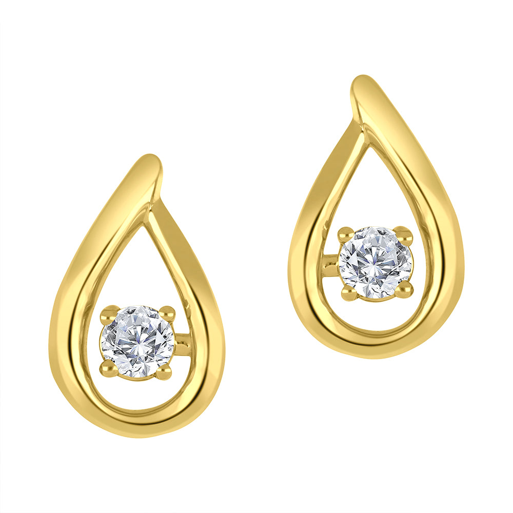 Delicate teardrop shapes in polished 10K yellow gold, each with a sparkling lab-grown diamond that gently moves with you. Modern simplicity and dynamic elegance — perfect alone or paired for a fresh, effortless look.