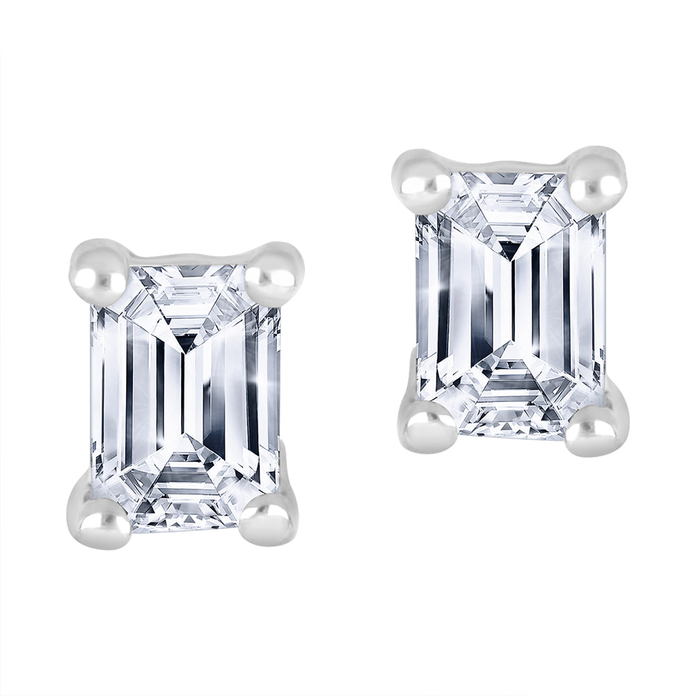 Elegant emerald-cut lab-grown diamond studs set in polished 10K white gold. Timeless design meets modern refinement—crafted for effortless everyday brilliance or sophisticated layering.