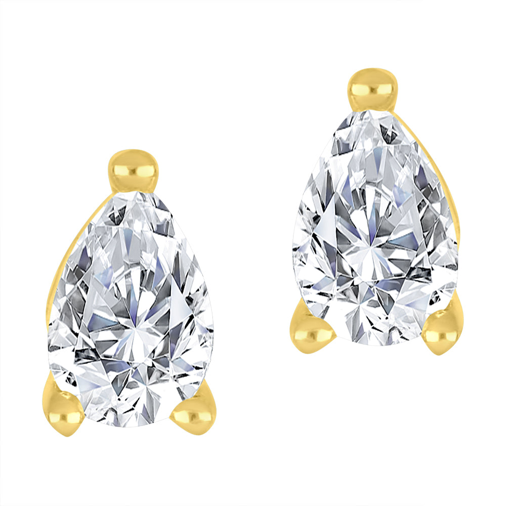 These pear-shaped lab grown diamond solitaire earrings showcase elegant curves and brilliant sparkle, set in sleek 10K yellow gold. Perfect for adding a touch of refined sophistication to every look—day or night.