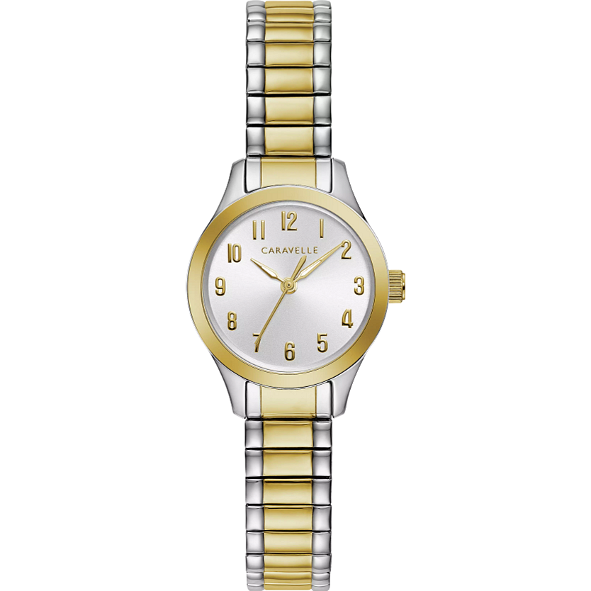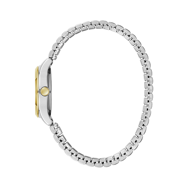 An everyday style that's anything but basic! Silver three-hand dial paired with two-tone gold and stainless comfort-fit expansion bracelet.