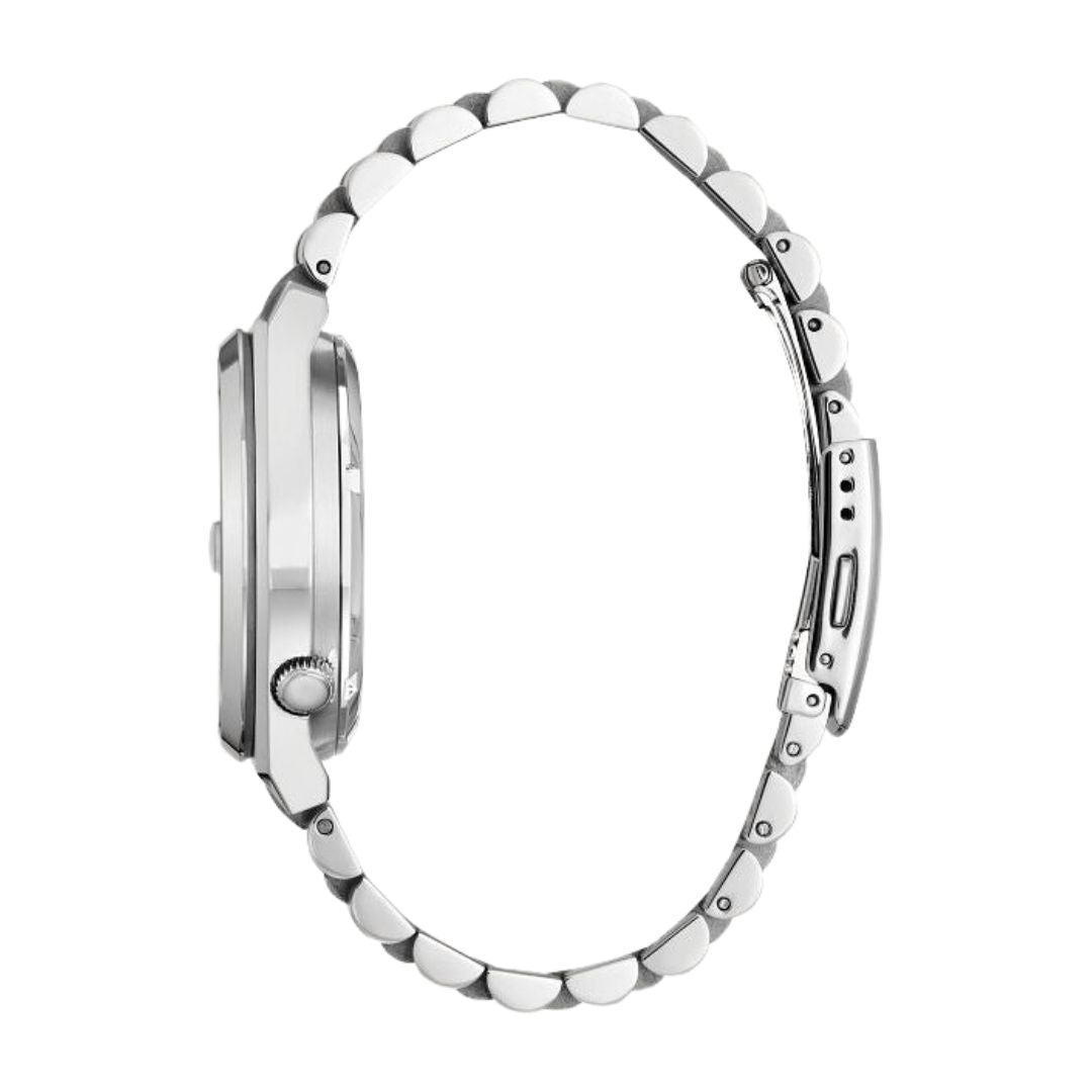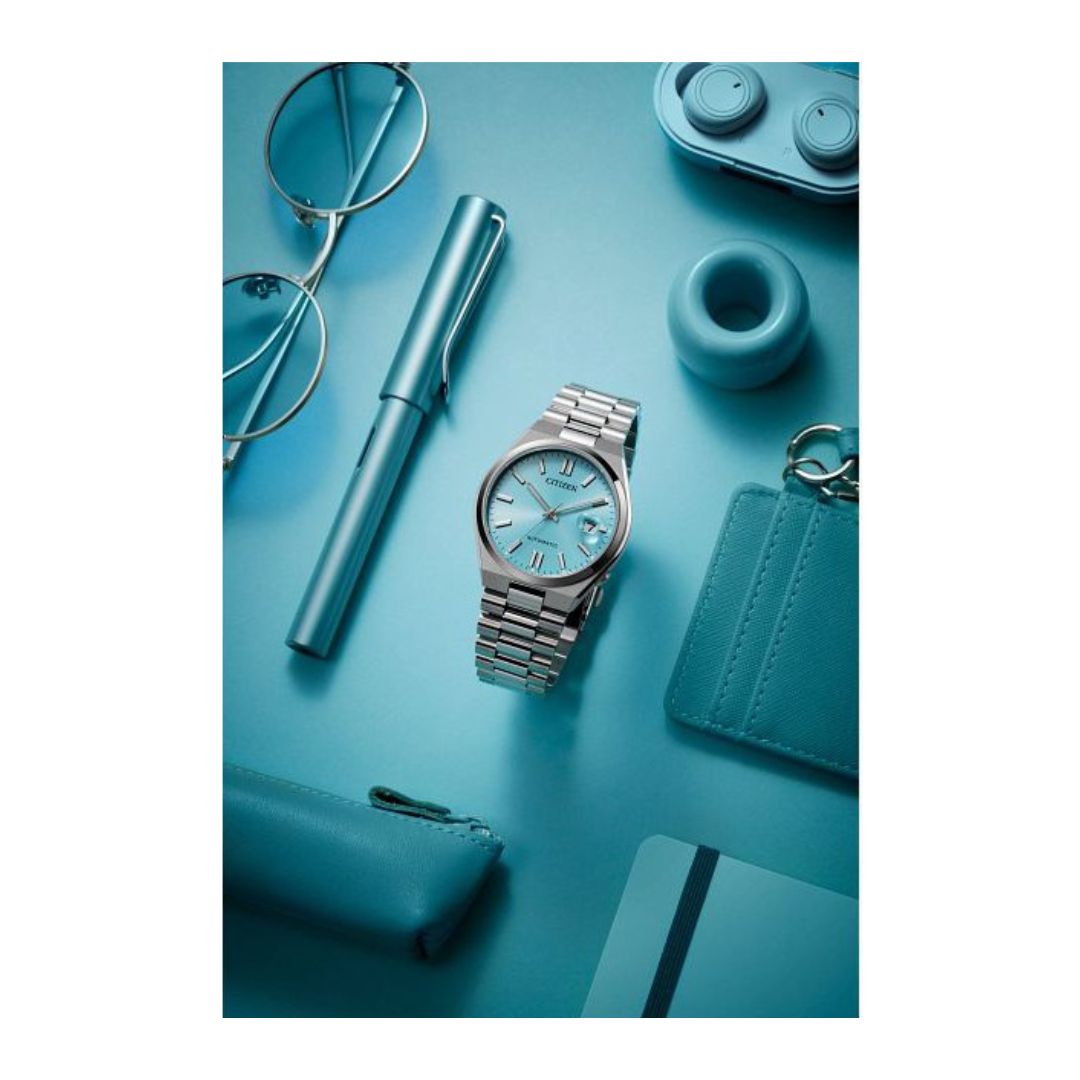 The "Tsuyosa" Automatic, from the NJ015 series, brings ultramodern sports styling right to your wrist. Executed in a versatile 40mm footprint, the sophisticated design of the watch makes a strong impression via a silver-tone stainless steel case and a seamlessly integrated, matching bracelet. Underneath an anti-reflective sapphire crystal, the sporty timepiece makes use of a sunray aqua dial, with a 3 o’clock date window and contrasting silver-tone details adding to its classic aesthetic. Powered by an automatic movement and offering up to 50 metres of water resistance, the refined timepiece is a daily wearing choice ready for work, play, and everything in between. Calibre 8210.
