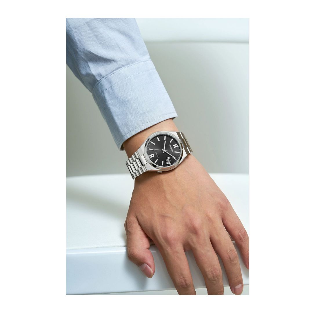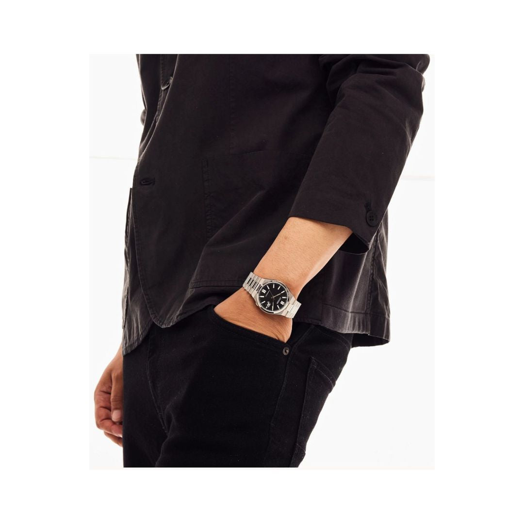 The "Tsuyosa" Automatic, from the NJ015 series, brings ultramodern sports styling right to your wrist. Executed in a versatile 40mm footprint, the sophisticated design of the watch makes a strong impression via a silver-tone stainless steel case and a seamlessly integrated, matching bracelet. Underneath an anti-reflective sapphire crystal, the sporty timepiece makes use of a sunray black dial, with a 3 o’clock date window and contrasting silver-tone details adding to its classic aesthetic. Powered by an automatic movement and offering up to 50 metres of water resistance, the refined timepiece is a daily wearing choice ready for work, play, and everything in between. Calibre 8210.