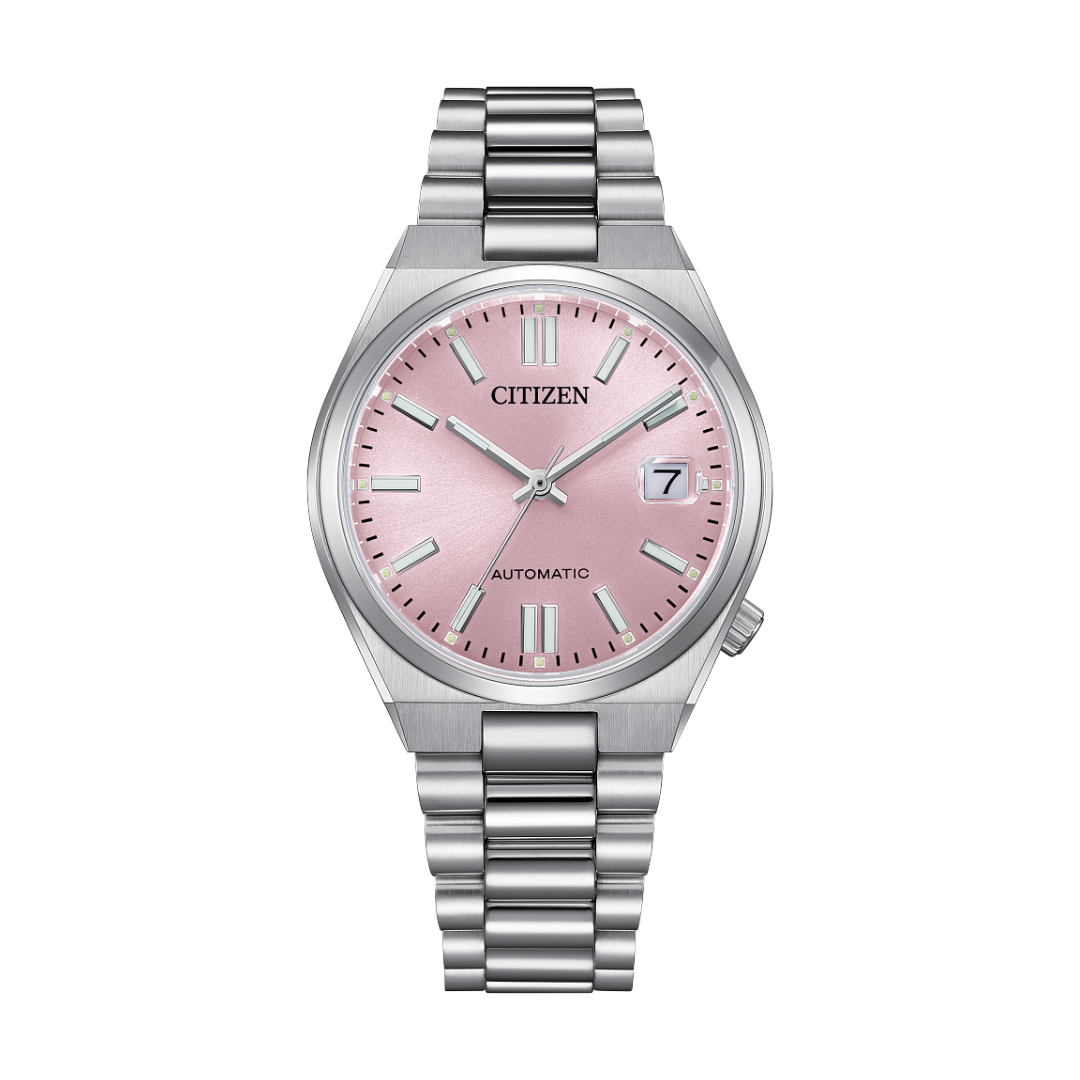 The TSUYOSA Automatic, from the NJ020 series, brings ultramodern sports styling right to your wrist. Executed in a versatile 37mm footprint, the sophisticated design of the watch delivers a strong impression via a silver-tone stainless steel case and a seamlessly integrated matching bracelet. Underneath an anti-reflective sapphire crystal, the sporty timepiece makes use of a sunray pastel pink dial, with a 3 o’clock date window and contrasting silver-tone details adding to its classic configuration. Powered by an automatic movement with a 42-hour power reserve. and offering up to 50 metres of water resistance, the refined timepiece is a daily wearing choice ready for work, play, and everything in between. Calibre 8210.