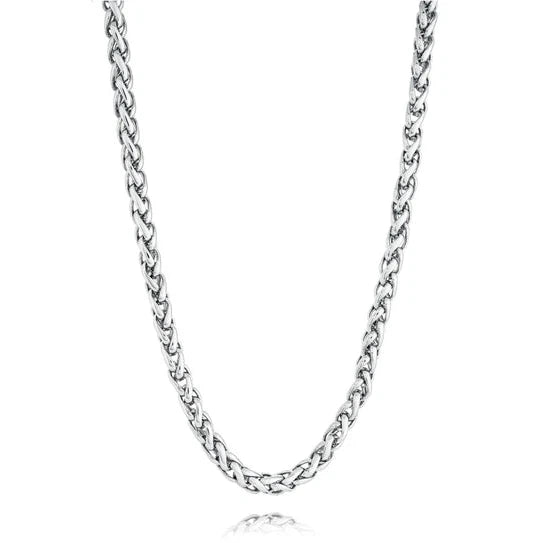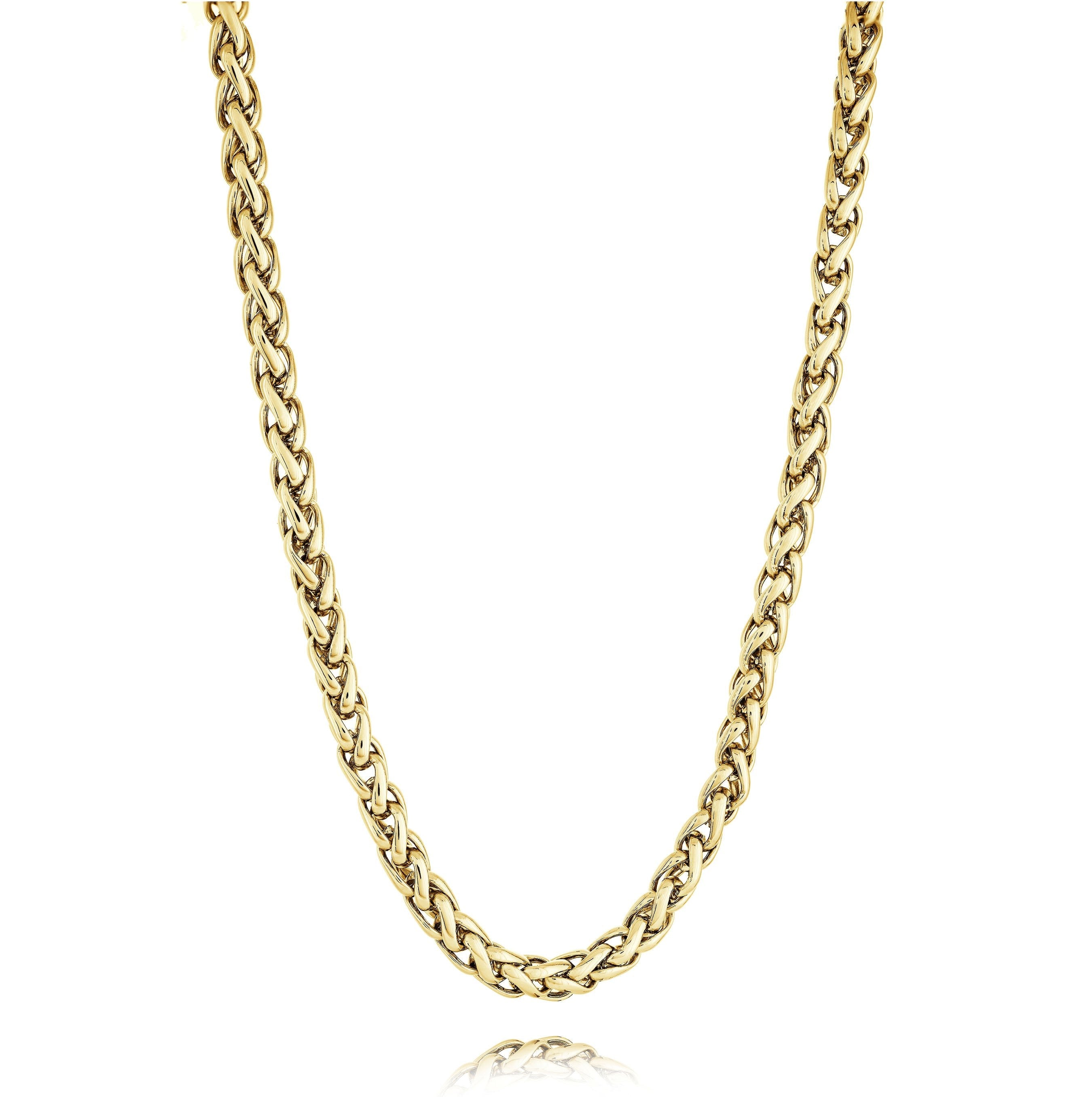 This 5mm ion-plated stainless steel wheat chain is ideal for adding sophistication to any look. The polished finish makes this piece stand out, while its durable construction ensures a lasting accessory.