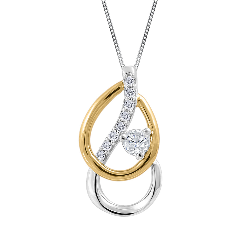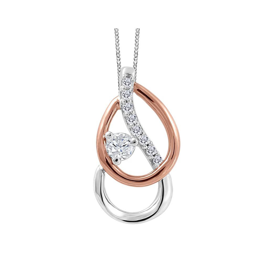 The Canadian Diamond Scroll Necklace is available in White with Yellow Gold or White with Rose Gold.