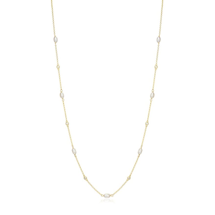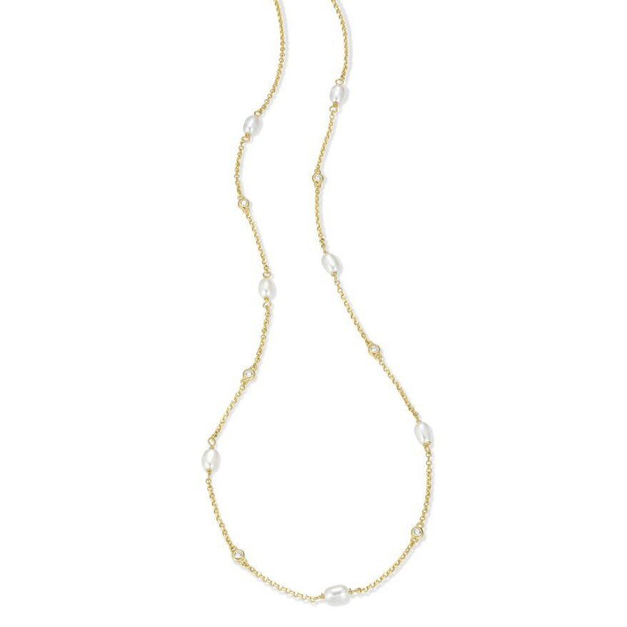 From the PAJ Collection. Luminous rhodium-plated sterling silver necklace with high-quality and perfectly cut, diamond-like cubic zirconia & pearls that will sparkle endlessly from day into night.