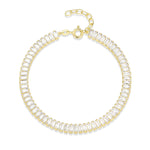 From the PAJ Collection. A crowd pleaser. This bracelet can be worn alone or layered with other bracelets. Constructed diamondlite cz baguette, 18kt gold-plated and sterling silver for a luxurious finish with adjustable length.