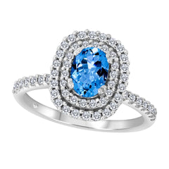 These Blue Topaz and Diamond Double Halo Earrings are available in White Gold.