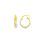 Indulge in luxury with these Criss-Cross Rope Texture Hoop Earrings, featuring gleaming high polish white gold hoops artfully intertwined with textured yellow gold rope detailing. This captivating contrast creates a statement piece you won't want to live without.