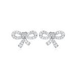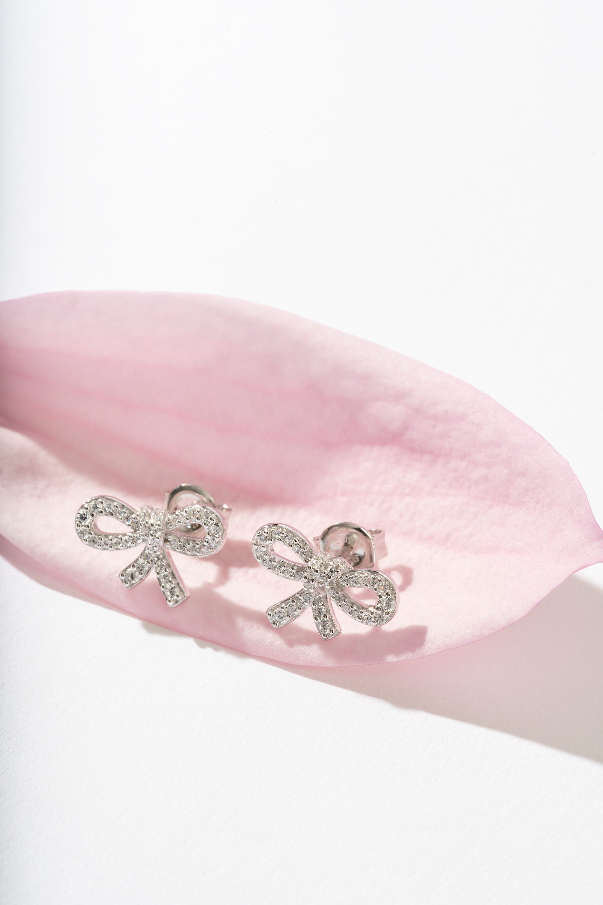 From the PAJ Collection, elegant rhodium-plated sterling silver bow stud earrings with high-quality cubic zirconia accents.