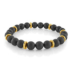 The Silas Bracelet is a fashionable accessory, crafted from ion-plated stainless steel with black matte and onyx beads for a contemporary look. The strong, durable material makes for a long-lasting, high-quality design.