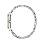 Timeless design, wear-with-everything style. Complete with easy-to-read numerals with 24-hour design and three-hand date feature. Gold-tone accents on stainless steel case and comfort-fit expansion bracelet are the finishing touches on this classic watch.