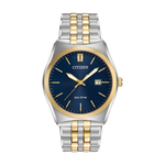 Sporty yet elegant, Citizen's Corso is the byword for versatility and the perfect addition to any wardrobe. Shown in two-tone stainless steel with a deep blue dial and date display. Featuring Citizen's Eco-Drive technology – powered by light, any light. Never needs a battery. Water resistant up to 100 metres.