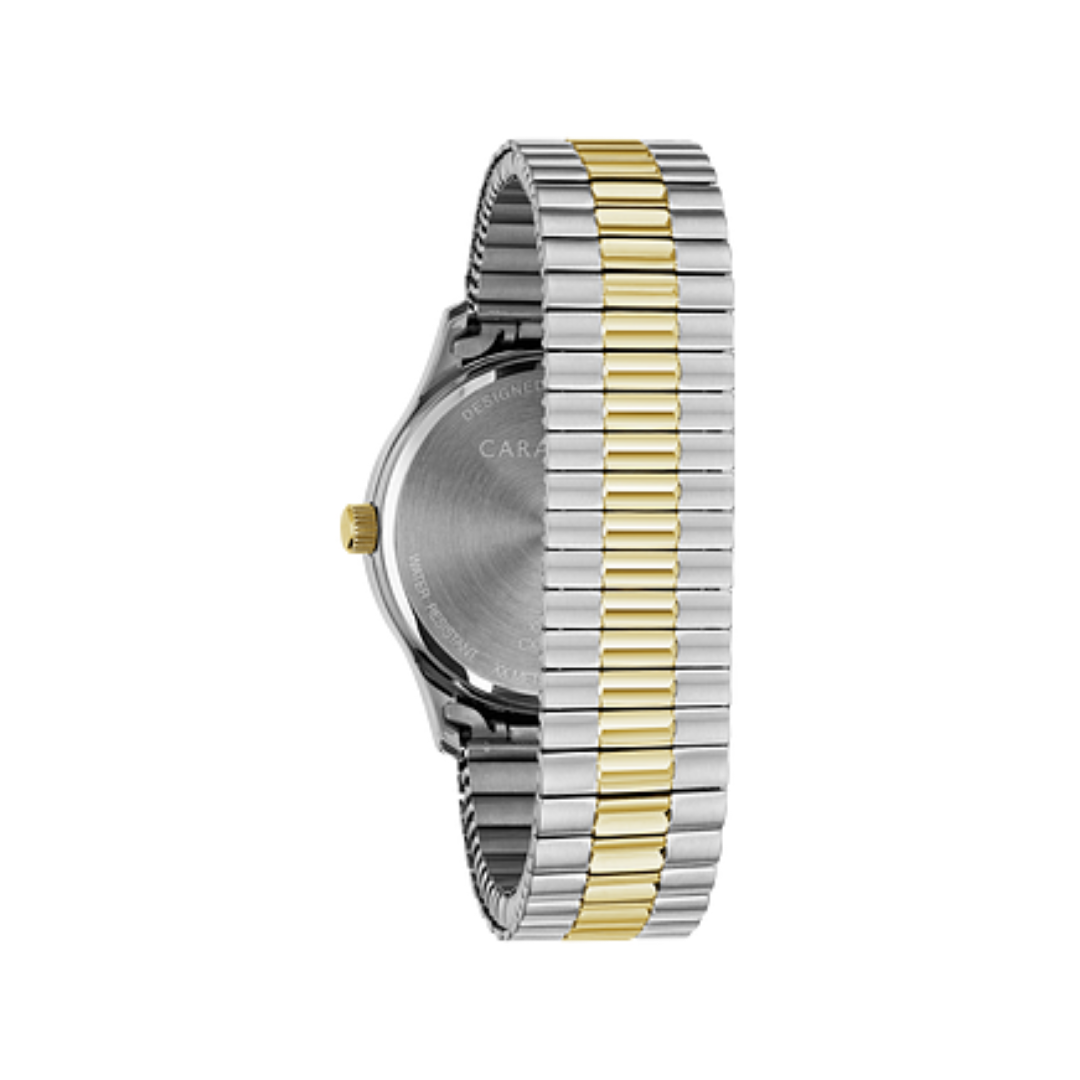 Timeless design, wear-with-everything style. Complete with easy-to-read bold 24-hour design and three-hand date feature on a matte white dial. Gold-tone accented stainless steel case and comfort-fit expansion bracelet are the finishing touches on this classic watch.