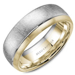 The Diamond Brush and Sandpaper Band is available in White & Rose, Rose & White, White & Yellow, or Yellow & White Gold.