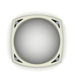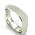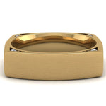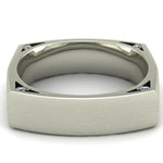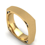 This differents Gents band brings a traditional look to a different shape with a sandpaper finished satin gold and a cool square-shaped exterior. Featuring 8 Diamonds this 6mm wide band is cast in either 10 or 14 Karat Gold have your choice of what suits you best!