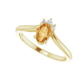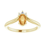 A large Oval Center stone, featuring three Diamonds accenting the chevron style band.