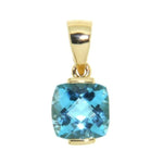 This classic Cushion Blue Topaz necklace is an elegant statement piece. Crafted with a tension setting from 14kt yellow gold, the cushion-cut blue topaz is sure to sparkle and stand out.