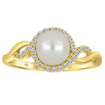 The Pearl and Diamond Twist Ring is available in Yellow Gold.